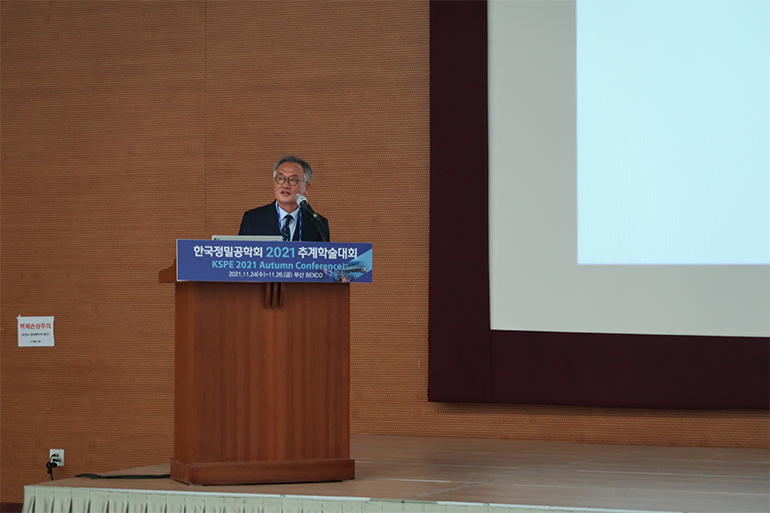 우리학회는 지난 11.24.(수)에서 26.(금)까지 ‘한국정밀공학회 2021 추계학술대회’를 개최하였습니다. 지난 학술대회는 COVID-19의 확산으로 인해 비대면(온라인) 개최로만 진행하였으나, 2년만에 현장 개최로 거행되었습니다. 우리학회 전임회장이신 부산대학교 정해도 교수님의 ‘K-Precision, Smart & Green’이라는 주제의 초청강연 및 각급 강연 그리고 663편의 발표논문 등 총 704편의 논문이 약 1,030여명의 참석자와 함께 개최되었습니다.