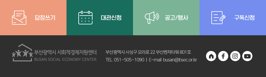 부산광역시 사회적경제지원센터에서 메일수신동의를 하셨기에 본 메일이 발송되었습니다.