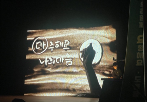 ‘마주해요’라는 주제의 샌드아트 공연을 통해 우리 서로의 마음을 마주하며, 건강하고 행복한 삶을 마음껏 누릴 수 있다는 메시지를 전달했습니다.