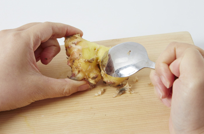 1. 생강은 흐르는 물에 씻은 뒤 숟가락으로 긁어 껍질을 제거한다.