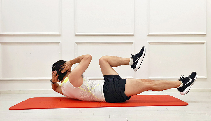 4. 다리를 들고 있는 자세를 유지하며 동작하기 때문에 플랭크 운동효과를 함께 느낄 수 있습니다.