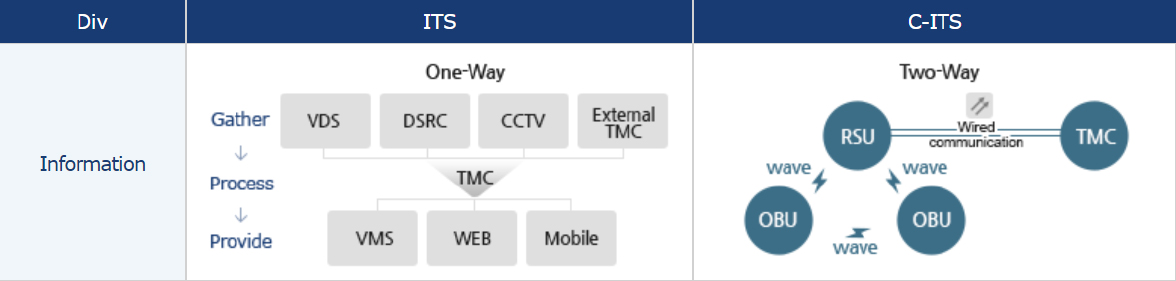 [그림 2] ITS vs. C-ITS: 정보수집 및 제공 프로세스