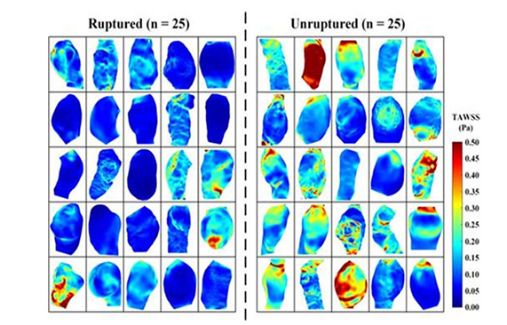 2) 전산 유체-구조 상호작용 해석 기반의 질환의 심각도 분석, 파열 위험도 예측 및 질환의 진행에 영향을 미치는 역학과의 상관관계 연구