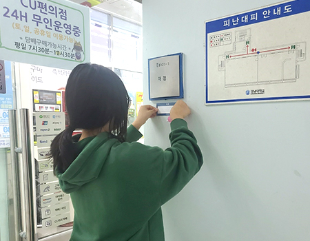 점자 제작 봉사 ‘마음으로 읽어요’에 참여하지 않았다면 알 수 없었을 점자 표지판 그리고 시각장애 친구들이 교내 시설 이용 시 불편했을 요소나 캠퍼스를 오가며 처했을 아찔한 순간, 내가 부착한 점자 표지판이 그 친구들에게 학교생활에 도움이 되었기를 희망합니다.