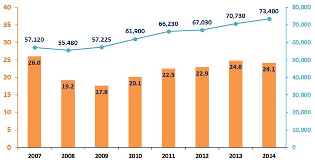 - 투자대상 기업 수는 73,400개로 2013년 대비 약 3.8%의 증가율을 보임