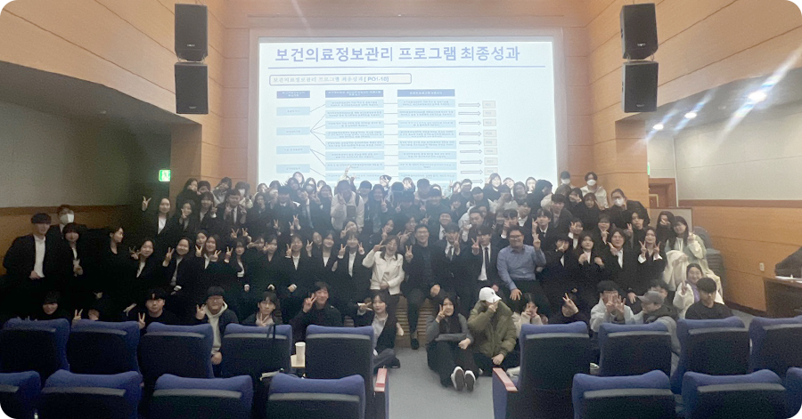 나아가 A.I 및 4차 산업혁명과 같은 미래사회에 부합하는 보건의료 데이터 활용, 의료기관 경영, 보건통계 등 디지털 헬스 시대에 맞춘 학습 내용을 제공하고 있습니다. 이러한 시대적 수요를 반영하는 과정에서 학생들의 학습 수월성과 성과 달성을 위해 캡스톤, 현장실습, 실무와 연관된 팀-프로젝트 비중이 높은 특성을 갖추고 있어 졸업 후 즉시 업무에 활용가능한 실무 능력을 갖추도록 구성되어 있습니다.