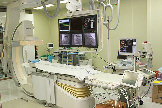 저희 심혈관센터는 중재시술 인증의 3분의 교수님, 혈관 촬영실 간호사 2명, 방사선사 2명, 심초음파실 및 기능검사실 2명, 외래 간호사 3명이 밤낮, 공휴일도 없이 일하고 있습니다. 2009년 심혈관 센터를 개소하면서 심장초음파 주 장비 2대와 휴대용 심초음파 1대, 핸드폰형 심초음파 3대를 도입하였으며 혈관조영장비 및 혈관내 초음파, 혈관내 풍선장치 등 환자 치료에 필요한 최신 장비를 도입하였습니다. 심초음파실에는 다년간의 경험이 풍부한 미국 심초음파 기사 자격증을 가진 심초음파 specialist가 심초음파를 담당하고 있으며 그 외에 홀터 검사, 24시간 활동성 혈압, 기립경사도 검사 등을 시행하고 있습니다.