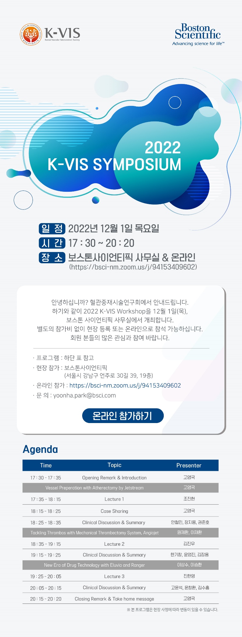 | 14:09-14:22 | Surgical finding & Late open conversion after EVAR | 권준교 (서울아산 혈관외과) |