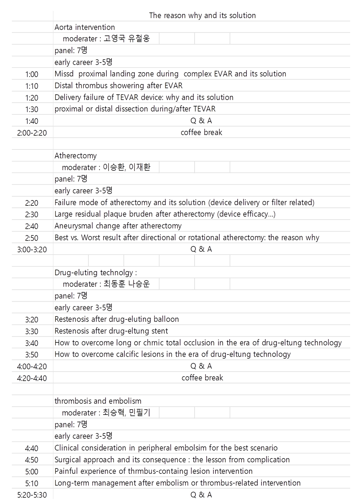Aorta, femoropopliteal, thrombotic disease에 대한 케이스 위주의 다양한 경험을 공유하며 unmet need를 충족시킬 수 있는 프로그램으로 진행할 예정이며 early carrer recruitment 에도 적극적으로 홍보할 예정입니다. 많은 관심 부탁드립니다.