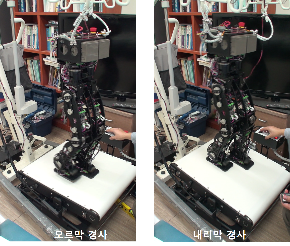- 김정엽 교수팀이 개발한 SUBO-1 이라는 이족 보행 로봇과 실시간 경사 조절이 가능한 런닝 머신을 이용하여, 본 연구에서 제안된 제어 전략의 성능을 실험적으로 검증하였다.