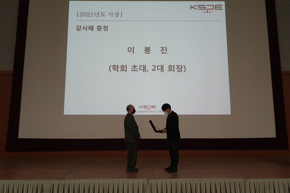 이봉진 전임회장은 ‘이러한 기부를 할 수 있게 되어 매우 영광스럽게 생각하며, 앞으로 많은 연구자들에게 격려가 되기를 바란다. 또한 앞으로 더 많은 회원분들이 학회에 학술기금 기부를 해주시어 정밀공학과 학회의 발전에 기여해 주시기를 바란다.’는 소감을 밝혔다. 학회에서는 2022년 10월 이봉진 전임회장에게 감사패를 전달하여 회원의 감사를 대신하였다.