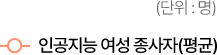 「2024 인공지능산업 실태조사」에 따르면, 최근 2년간 인공지능 분야 종사자 수는 2023년 51,211명에서 2024년 54,039명으로 증가했습니다. 이 중 여성 종사자는 2023년 7,958명에서 2024년 8,242명으로 늘었으며, 기업당 평균 여성 종사자 수는 3.2명에서 3.3명으로 나타났습니다.