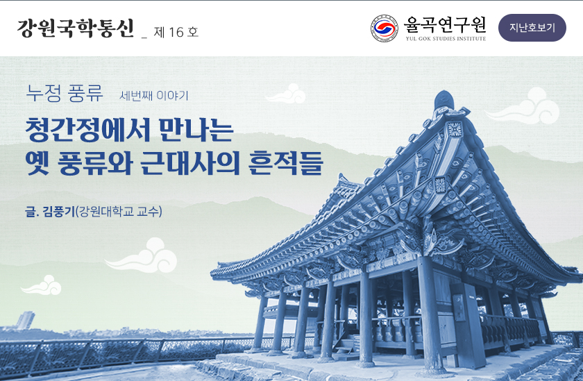 7번 국도를 따라 속초에서 고성을 향해 오르다 보면 바닷가를 배경으로 멋지게 서있는 정자를 홀연 만난다. 청간정(淸澗亭)이다. 누정을 오르면 드넓게 펼쳐진 백사장 너머로 푸른 바다가 한없이 펼쳐진다. 답답했던 마음이 활연(豁然)히 트이면서 하늘과 바다가 맞닿은 곳으로 흐르는 은하를 타고 하늘로 오르는 듯하다. 청간정은 강원특별자치도 고성군(高城郡) 토성면(土城面) 바닷가에 위치한 정자다. 말 그대로 맑은 시내가 동해로 흘러 들어가는 꼭짓점에 자리하고 있다. 이곳은 두 명의 대통령이 글씨와 시를 남긴 곳이므로, 누정에 올라서 우리 현대사의 굴곡을 생각해보는 계기를 마련해 주기도 한다. 이승만 전 대통령은 1953년 5월 15일 ‘청간정’이라는 현판 글씨를 남겼고, 최규하 전 대통령은 1980년 여름 이곳에 들러서 연구(聯句)를 짓고 직접 글씨를 써서 시판으로 남겼다. 원래 이 정자의 명칭은 청간역(淸澗驛)이라고 하는 역말과 관련이 있다. 간성군 관아의 부속 건물로 이용되었기 때문이다. 근대 이전의 청간정은 현재의 위치와는 다른 곳에 있었을 것으로 추정되는데, 이와 관련된 기록도 명확하게 남아있지 않아서 다양한 기록의 조각들을 통해서 전반적인 윤곽을 그려볼 뿐이다. 특히 청간정은 늘 만경대(萬景臺) 혹은 만경루(萬景樓)와 병칭되어 왔다. 실제로 조선 후기의 시문 및 서화에서도 두 건물은 나란히 배치되어 있음을 확인할 수 있다. 우리에게 널리 알려진 정철(鄭澈, 1536~1593)의 가사 작품 「관동별곡(關東別曲)」에서도 ‘청간정 ‘청간정 만경 몇 고 안돗던고’ 라고 하여 두 명칭이 나란히 표기되어 있다. 역사적으로 보면 청간정보다 만경대가 먼저 기록에 등장한다. 만경대는 고려 후기가 되면 이미 문헌에 등장한다. 그것은 만경루라고 하는 전각의 존재 여부 이전에 바닷가에 우뚝 솟아있는 자연경관으로서의 ‘만경대’가 사람들의 이목을 끌었기 때문으로 보인다. 그럼에도 불구하고 관동팔경의 구체적인 장소가 거론되던 16세기 후반에는 청간정이 대표 명칭으로 자리를 잡았다.청간정의 건립 연대는 몇 가지 이설이 있기는 하지만, 이 누정이 조선 지식인 사회에 널리 알려지게 된 것은 1519년경 최천 에 의해 중수된 이후부터이다. 어떤 곳이든 하나의 장소가 명소로 인식되기 위해서는 중요한 계기가 필요하다. 관동팔경의 다른 장소에 비하면 청간정은 명승으로서의 문화적 강렬도가 약했다. 심지어 남한조(南漢朝, 1744~1809)는 관동팔경 중에서 망양정과 청간정은 바다에 임하여 가로막는 것이 없어서 탁 트인 점은 있지만 기록할 만한 기이한 풍치(風致)는 없기 때문에 고성의 해산정(海山亭)과 해금강으로 대치하기까지 했다. 실제로 청간정이 관동팔경 중에 분명히 자리를 잡게 된 이후 조선 후기 문인들의 글에는 청간정에 대한 실망감을 표시하는 사람들이 제법 있었던 것 같다. 김종정(金鍾正, 1722~1787)은 청간정이 관동팔경 중의 한 곳이지만 기이한 경관이 없어서 당시 사람들이 그곳을 들르지 않고 그냥 가는 경우가 많았다는 점을 지적하기도 했고, 유인석(柳麟錫, 1842~1915) 역시 청간정이 팔경 중에서 기이한 경관이 적다고 썼다.그렇지만 바다를 직접 눈앞에서 마주할 수 있는 곳은 전국적으로도 흔치 않았으며, 이곳에서의 경험은 많은 문인학사들의 상상력을 자극했다. 생각보다 많은 작품이 이곳을 배경으로 지어졌고, 고성이나 간성으로 고을살이를 하러 가는 사람들을 전송할 때면 청간정은 늘 이 지역을 대표하는 상징 공간으로 꼽혔다. |